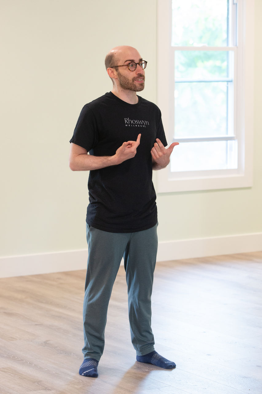 Josh brings a deeply grounded and calming presence to Rhoswyn as our resident Qi Gong teacher. A lifelong learner, he’s spent the last 15 years exploring meditation modalities ranging from transcendental and mantra meditation to breathwork and mindfulness. But it was Qi Gong that truly transformed his life—and he now shares this practice with others through both group classes and 1-on-1 sessions. Josh is certified under renowned masters Lee Holden, Robert Peng, and Ken Cohen, and also offers personalized Daoist coaching. His teaching helps students return to a state of peaceful awareness that feels like home.